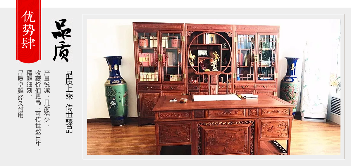 東陽市大聯(lián)福林堂紅木家具廠座落于素有“東方好萊塢”之稱的國(guó)家AAAAA級(jí)影視旅游基地橫店影視城, 是一家集開發(fā)、設(shè)計(jì)、生產(chǎn)、銷售、服務(wù)為一體的綜合型企業(yè)。本公司匯集一批具有豐富生產(chǎn)經(jīng)驗(yàn)的能工巧匠,具有豐富的紅木家具設(shè)計(jì)生產(chǎn)經(jīng)驗(yàn)。本公司產(chǎn)品主要選用紫檀、花梨、酸枝、雞翅等優(yōu)質(zhì)紅木,并采用純天然蜂蠟飾面。經(jīng)過蒸煮、脫脂、烘干、定型等多道工序嚴(yán)格處理,福林堂紅木始終嚴(yán)格秉承“質(zhì)量第一”、“信譽(yù)至上”的經(jīng)營(yíng)理念,在繼承傳統(tǒng)工藝的基礎(chǔ)上,不斷創(chuàng)新,大力引進(jìn)先進(jìn)家具設(shè)備、烘干設(shè)備,實(shí)現(xiàn)了現(xiàn)代生產(chǎn)工藝與傳統(tǒng)表現(xiàn)手法的有機(jī)相融。
